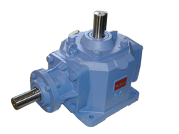 [構(gòu)造] 采用特殊鋼經(jīng)熱處理后拋光制成的弧齒錐齒輪,確保精度。 軸材料采用碳素鋼施以熱處理加工,提高抗彎強(qiáng)度。 使用圓錐滾子軸承,能承受各軸的徑向負(fù)荷及軸向負(fù)荷。 A軸為單側(cè)軸承支持,B軸為兩端軸承支持 (在附有軸承座的情況下B軸為單側(cè)支持)。 齒輪箱體由高強(qiáng)度的鑄鐵制成。 采用油浴潤滑方式,齒輪箱的底部作為油槽,齒輪的一部分沉浸在潤滑油中回轉(zhuǎn),濺起的油沫充滿齒輪箱,以此潤滑齒輪及軸承。 回轉(zhuǎn)部分采用油封,固定部分采用O形圈或液封等,以防外漏。